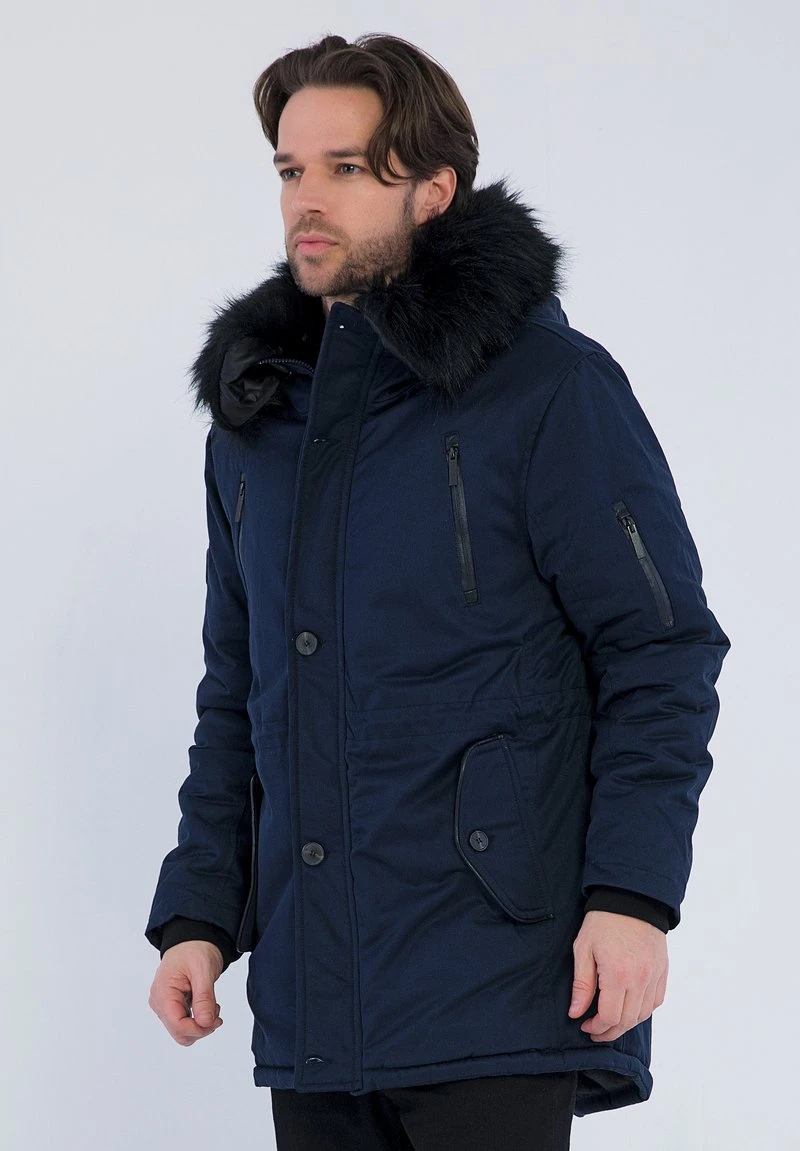 | Details Kapuze | Gefütterte Kapuze, abnehmbarer Kunstfellkragen |